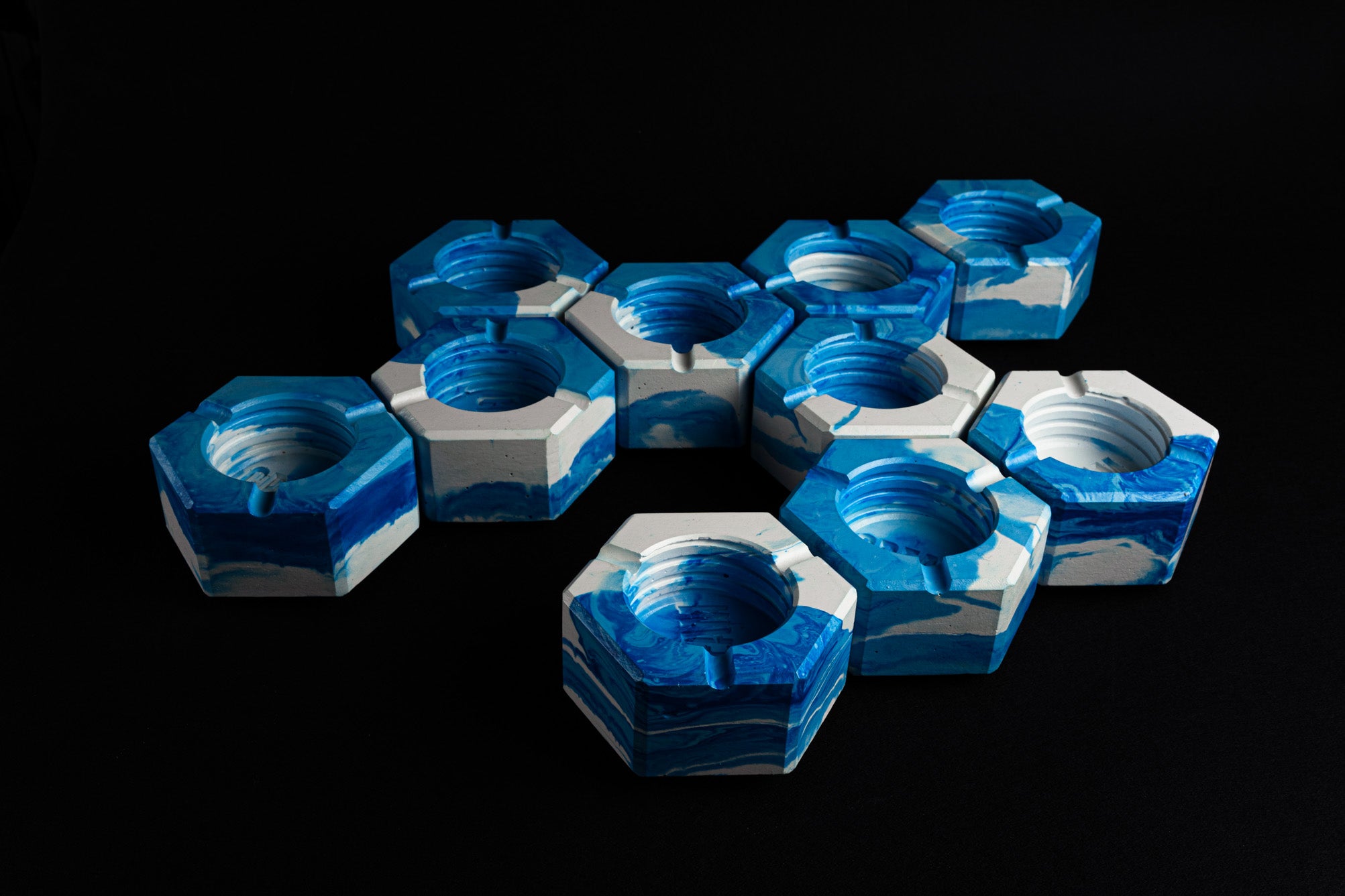 Ogni pezzo è colato a mano, con piccole imperfezioni che raccontano la materia e il gesto.